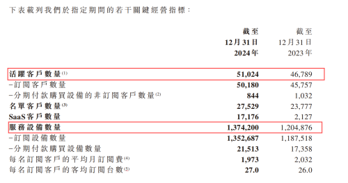 据财报数据显示,截至2024年12月31日,易点云拥有51,024家活跃客户,较2023年46,789同比增长9.1%;在服务设备数量达1,374,200,较2023年1,204,876同比增长14.1%,随用随还的办公IT综合解决方案核心业务营收达11.88亿元,较2023年同比增长6.5%。